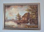Olieverschilderij van a.williams 79x59cm een landschap met een watermolen en een boerderij aan het water met een klassieke lijst in perfecte staat