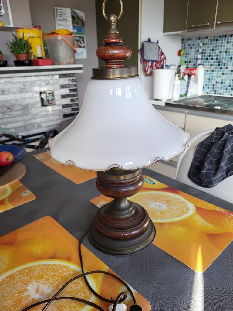 Vintage landelijke tafellamp met opaline glas of milk melkglas hoogte 60 cm