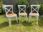 Eetkamer of keuken stoelen in zeer goede staat. Goede viltnoppen op de poten. Zithoogte 47 cm. Kleine beschadiging aan één zitting, zie laatste foto.