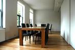 Opknapproject – demonteerbaar – stevig uitgevoerd te koop aangeboden: een zeer grote rechthoekige eettafel met 6 zwarte stoelen. Dit is een zware, stabiele tafel, geen licht meubel of wegwerpproduct,