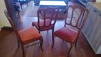 Vijf stevige eiken stoelen in landelijke stijl, zijn niet los of doorzeten.