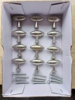 Wegens vervanging van onze kast- & ladetrekkers in keuken/berging en badkamer: 64 zilverkleurige ladetrekkers + bouten. 35 Mm, vijsjes zijn ook 35