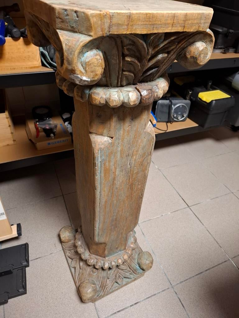 Antieke zuil in zeer mooie staat, zwaar tropisch hout. Mooie afwerking.