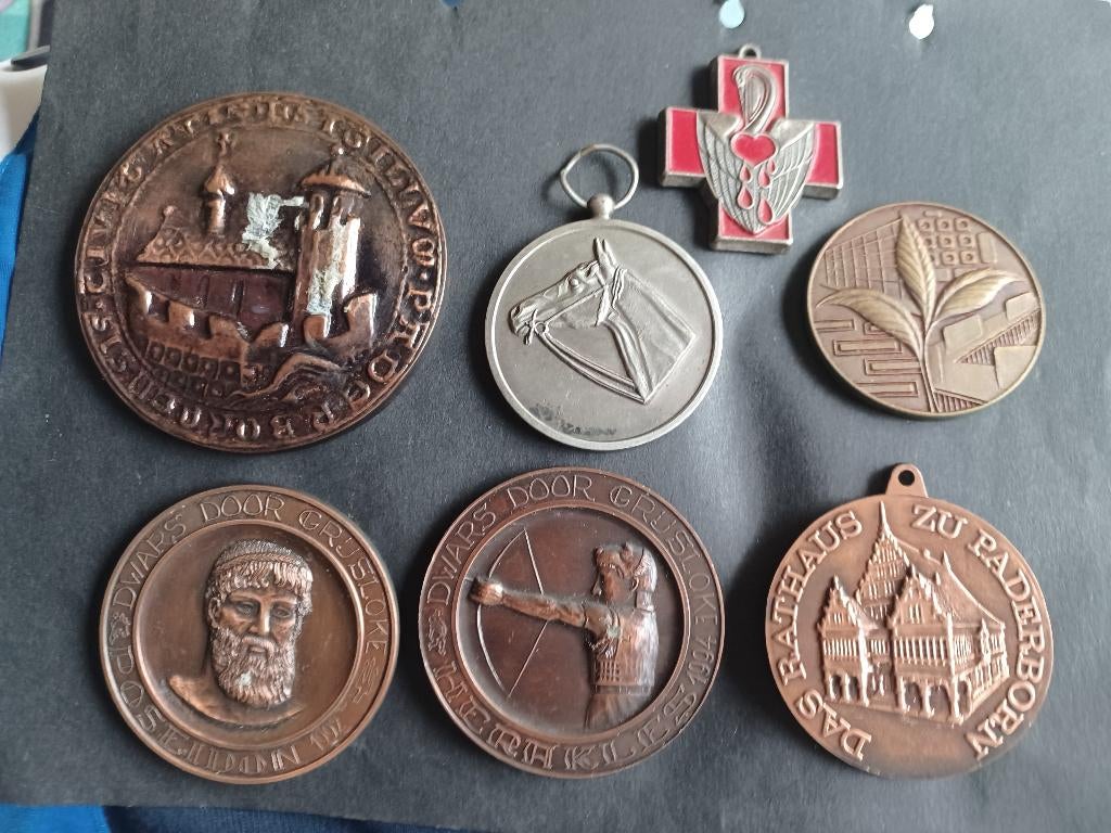7 zware medailes of penningen zie fotos