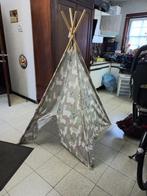 Mooie stoffen tent met alpaca motieven. Ronde houten stokken. Hoogte 1,70 m. Afmetingen: tenthoogte 1,40 m onderaan 1,10 m in het