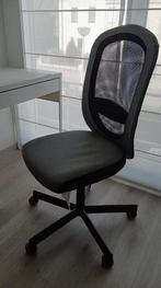 Zwart grijze bureaustoel met mesh in rugleuning. Met wieltjes en in hoogte verstelbaar. Met verstelbare rugleuning. 2 Stuks beschikbaar, vraagprijs is €17,5/st merk flintan (ikea)