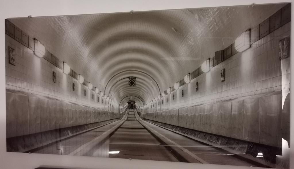 Zeer mooie foto op plexiglas 2m op m. Muurbevestiging is incl foto van voetgangers tunnel. Nieuwprijs was 995€ bij top interieur