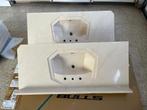 2 mooie lavabo's met blad in natuursteen (marmer?) Afmeting blad = 140 x 60 cm identiek paar, uitgezonderd schuine hoek van het blad (1 is bedoeld voor linkse plaatsing , de andere rechtse) 400,00