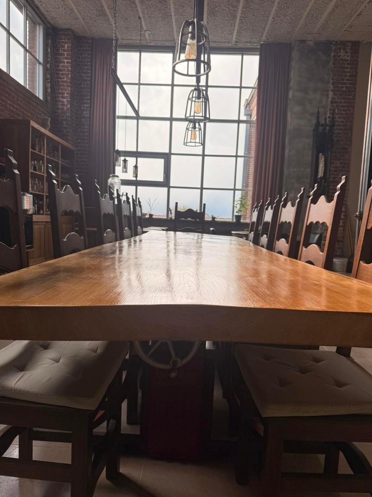 Uit ons museumcafe heel mooi rond tafeltje, met twee stoelen in goede staat ! Past zowel bij antiek als bij modern interieur. Avelgem 8580