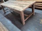 Massief eiken boomstamtafel tuintafel kloostertafel boerentafel eettafel handgemaakt geborsteld. Deze kan zowel binnen als buiten gebruikt worden en is momenteel nog onbehandeld gewicht +- 120kg lengt