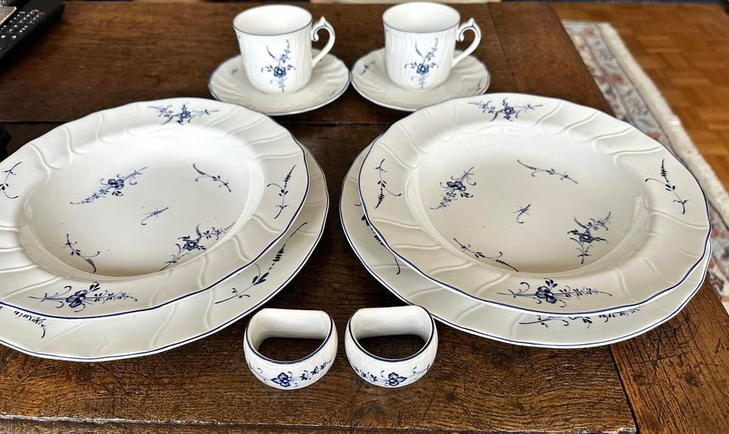 Villeroy & boch, luxemburg, 2 kopjes, 2 schotels, 2 borden, 2 dinerborden, 2 soepborden, 2 servetringen. Perfecte conditie