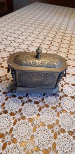 Prachtige suikerpot in massief zilver, met de hand gegraveerd. Buitenkant is gepatineerd zilver. B h l 15 18 15 cm afhalen op z