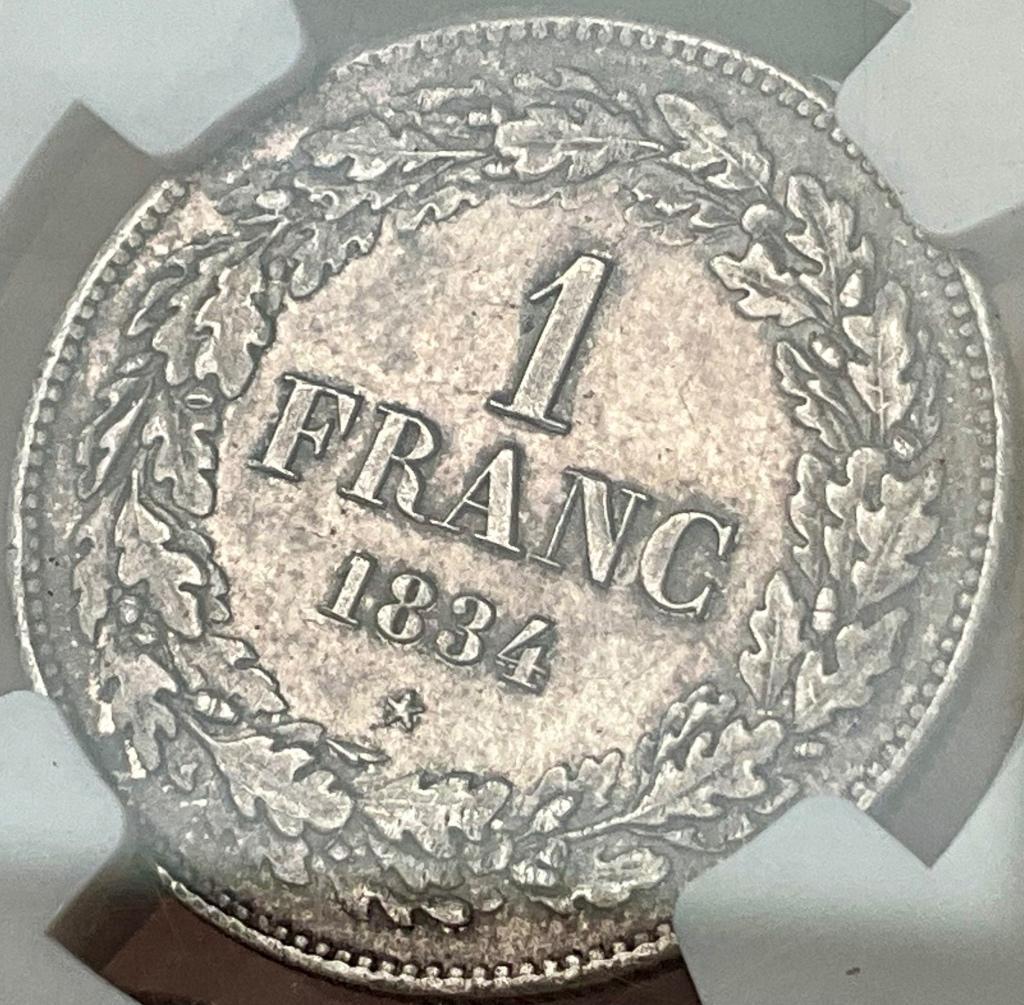 Belgium 1 franc 1834 zeldzaam stuk in prachtige staat. Topstuk gegradeerd door ngc als ms63