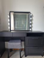 Ik verkoop deze complete ikea kaptafel. De set bevat: -de hoofdkast met laden en opbergruimte. -De spiegel vergezeld van twee led-schansen, -de inklapbare binnenspiegel met compartimenten, -een bijpas
