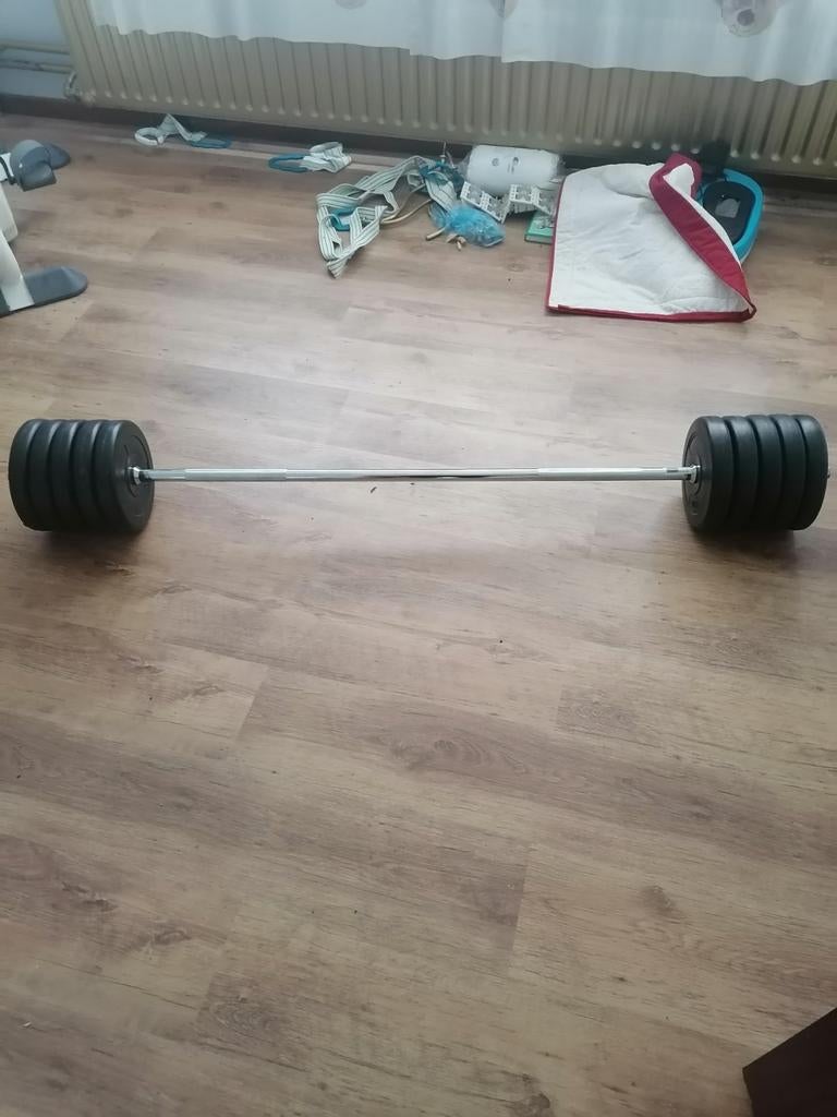 Te koop: z.g.a.n halterstang met 10 halterschijven ven van 2.25 Kilo ophalen in maaseik (dorne )