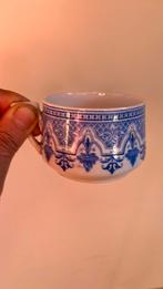 Ancien service à café creil&montereau décor bleu , 6 tasses ( 2 tasses impeccables et 4 tasses jaunies par le temps) et 14 sou