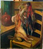 Afmeting 80 x 90 cm gesigneerd wellens (?) Sfeervol kleurrijk jachttafereel, jacht levering bespreekbaar