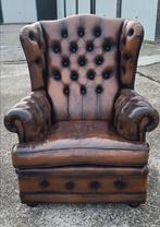 Hele mooie dikke vintage chesterfield oorfauteuil te koop. De fauteuil heeft een prachtige patina en verkeerd in zeer mooie vintag