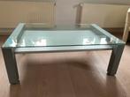 Salontafel met zilverkleurig, metalen onderstel. Glasplaat. Op de glasplaat zitten wat krasjes maar kan nog prima een ronde mee. Afmetingen: 1.20Mx80x44 cm. Mag voor een klein prijsje weg. Zelf afhale