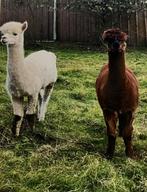 2 mooie alpacas te koop. Wij verkopen onze goed verzorgde alpacas, witte alpaca (vrouwtje) en 1 bruine alpaca (mannetje). Deze zijn 4 jaar oud. Geen familie van elkaar en worden enkel samen verkocht.