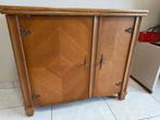 Oude massief houten retro/vintage timmermanswerkbank met houten bankschroef. Deze houten werkbank is 220cm lang, 60cm breed en 88cm hoog. Prachtig om te plaatsen als decoratiestuk. De kast met legplan