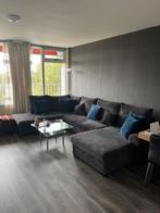 Bankstel (zo goed als nieuw) incl kussens bankstel 3,50m x1,70m rechts x 2,20m links hoogte 0,40m glazen salon tafel tv kast witte tv kast 1,80 x 0,45 x 0,37 hoogte tv 1 55’’ samsung tv 2 40’’ philips
