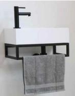 Ink versus fonteinpack - links - polystone mat wit - toebehoren zwart (incl. Kraan, sifon, afloop). Nog in de verpakking en in perfecte staat. Helaas verkeerd gekocht. Afemtingen: 36x18x9cm