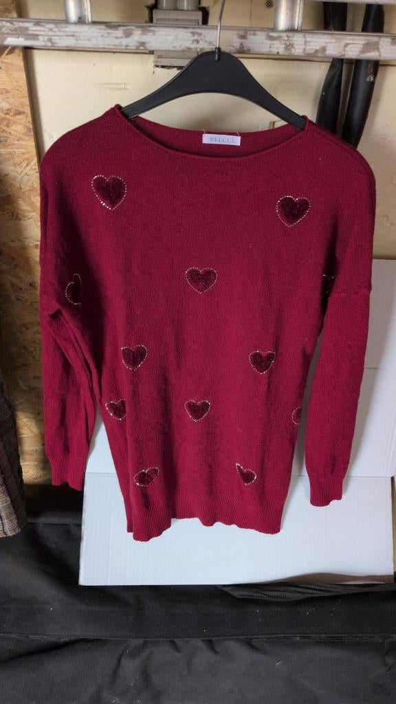 Rode trui met hartjes van belcci - xl - 6€