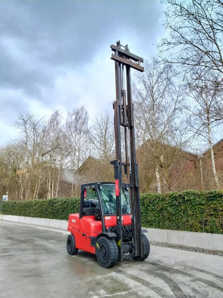 Eigen gewicht: 8570 kg free-lift vol rubber banden hydraulisch verstelbare lepels side-shift max. Hefhoogte: 6050 urenstand: 7094 hefvermogen: 5000 triple mast lpg bouwjaar 2011 totale afmeting lengte