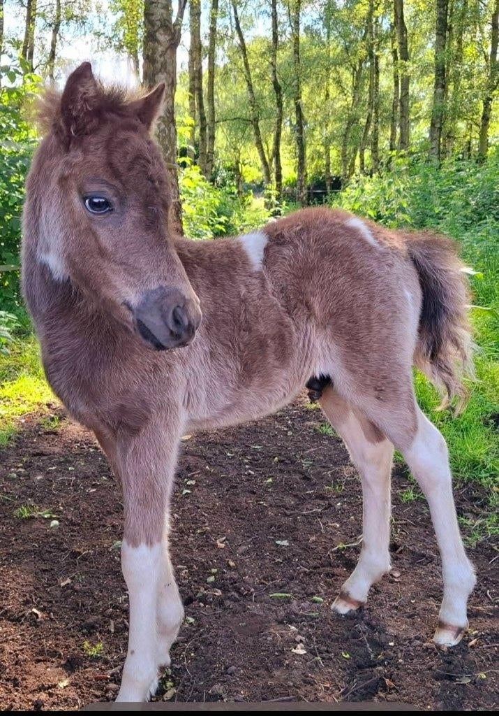 Opzoek naar een gouden huisje wegens overstap cobra van de ansahoeve 2j hengst geboren op 07/05/2024 kruising shetlander x nmprs minipaard kleur : heeft appaloosa kenmerken cobra is heel sociaal betro