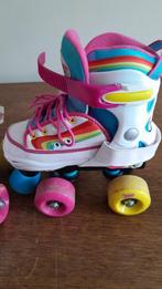 Optimum rolschaatsen, maat verstelbaar 28-31 amper gebruikt, zo goed als nieuw ook pols, elleboog en kniebeschermers. Alles samen