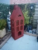 Heel mooie tuinhaard met schoorsteen gezellig bij gebruik als tuinhaard of decoratie tuin cortenstaal met deur met slot vooraan ook mooi om lichtjes in te plaatsen of grote tuinkaarsen afmeting 1m60