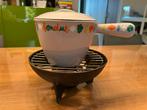 Vintage fondue pot van le creuset met onderstel. Pot in heel mooie staat. Mèt deksel. Brandertje niet origineel. Verzenden kan. Wordt stevig ingepakt. Verzendkosten voor de koper.