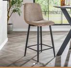 2 barstoelen zo goed als nieuw . Zithoogte is 65 cm van voor is het een ribstof en onderstel is van zwart metaal.