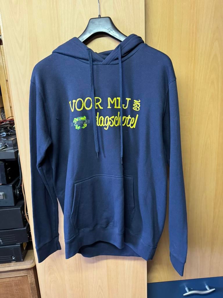 Opschrift: “voor mij een dagschotel” originele trui werd aangekocht in het kampioenen café in plopsaland. Nooit gedragen.