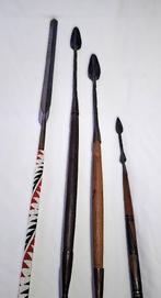 Een viertal prachtige authentieke speren afkomstig van de maasai stam uit kenia. Al deze met de hand vervaardigde werp speren zijn