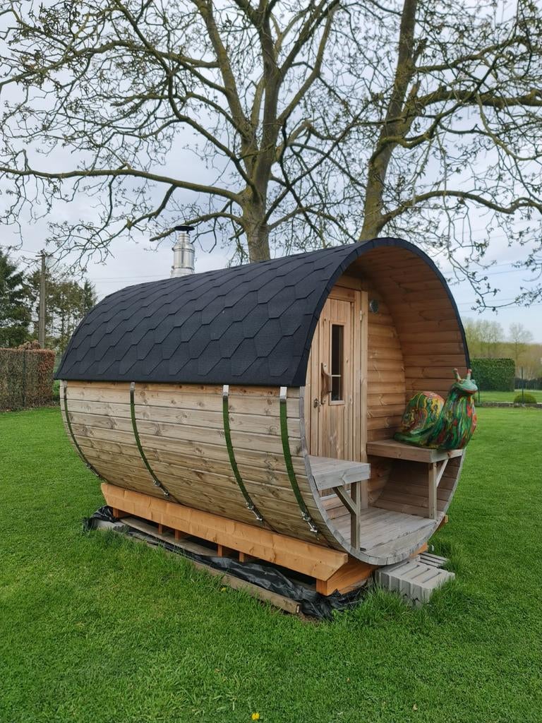 Sauna thermowood au feu de bois acheté neuf janvier 2025 dimensions 3000 x 2270 diamètre épaisseur bois 46mm prix neuf 10.320 €