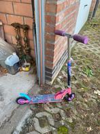 Roze space scooter, handvat beschadigd en toont al wat roestvorming.