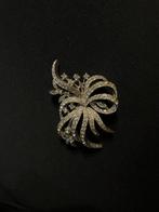Prachtige authentieke vintage panetta broche, uitgevoerd in rhodium-plating en rijk bezet met sprankelende kristallen. Het ontwerp