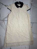 Robe zara en dentelle écrue avec col claudine noir, manches courtes. Coupe droite, doublée à l’intérieur. Fermeture discrète au do