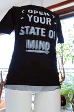 Sierlijk 2-ledig t-shirt met de boodschap ‘open your state of mind’. Die message visie 2-ledig opgedeeld met een doorschijnende weergave. Het unieke shirt is vervaardigd in 100% zwart katoen met daaro