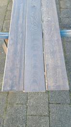 Mooie partij massief eiken vloerdelen. De vloer heeft zwevend gelegen. Geen lijmresten of nagels. De vloerdelen zijn 2cm dik, hebben wisselende lengtes tot 240cm en zijn 14cm breed. De vloerdelen zijn