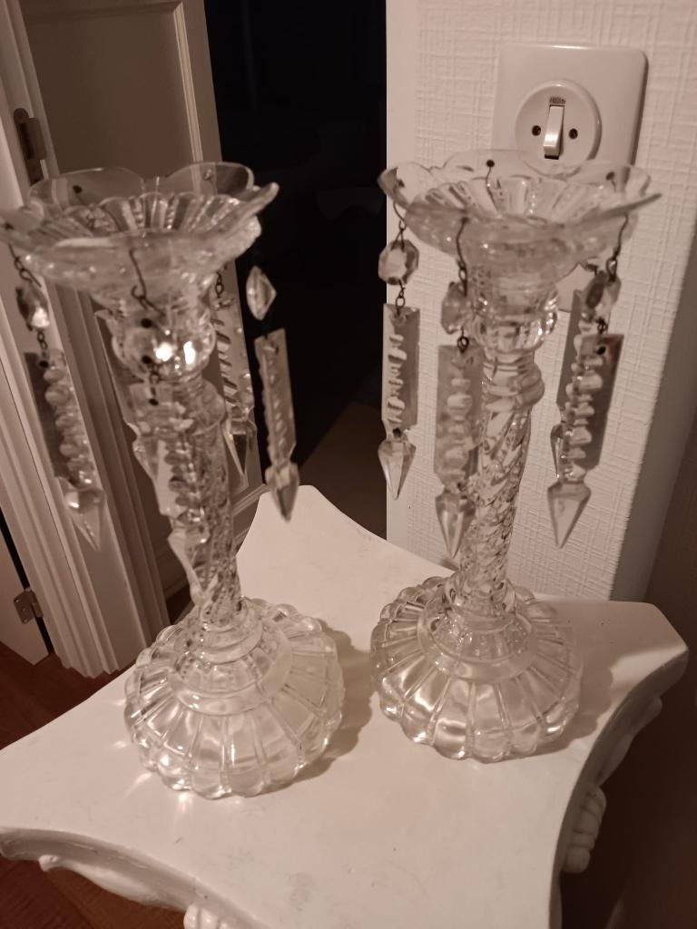 Antieke kandelaars met belletjes, hoogte is 23 cm. In perfecte staat. Op te halen in de buurt van lede.
