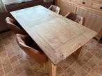 Mooie eettafel “type kloostertafel” in teakhout (zeer stevig). Afmetingen: lengte 1m80, breedte 90 cm, hoogte tafelblad 80 cm, hoogte tot onderkant lat (onder tafelblad) 68 cm. Zie foto’s.