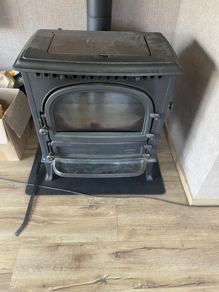 Houthaard met bak om ook kolen te branden. Merk saey. Voor vertrek zal deze nog volledig opgekuist worden.