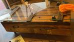 Authentieke houten salontafel met wielen. Normaal gezien was er glas op maar deze is gebroken.