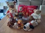 Verschillende knuffels/troetels - 1 zacht 'i love you❣️' kussen - 3 grote beren - 1 liggend hondje - 1 bruin beertje met rugzakje - 2 kleinere zotte maandag popjes - 3 kleine beertjes waarvan