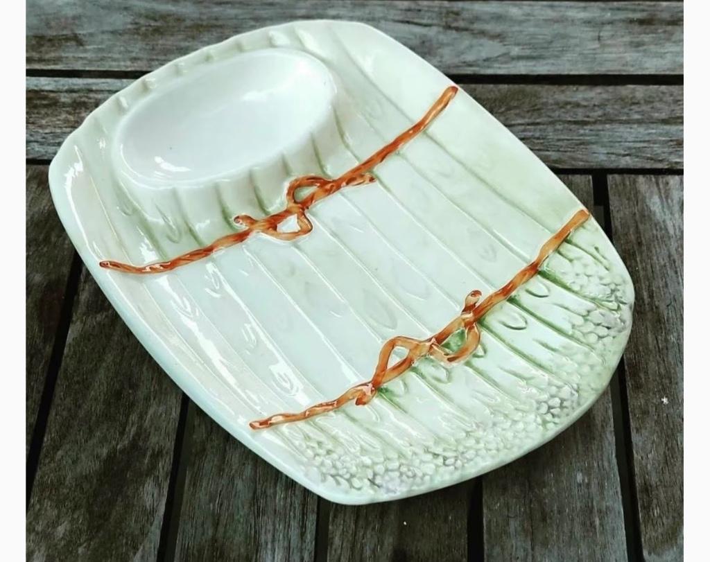 Schaal voor aspergesalade stempel: made in italy, handpainted 23x18cm groentenschaal voor asperges, vintage schaal