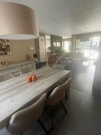 Tafels met zes leren stoelen glazen barkast dressoir met schuiven en deuren