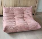 Togo ligne roset 2-zit ontworpen door michel ducaroy, geherstofeerd in mooi oud roze corduroy met originele tag, foam,.. En met nog het oude patroon aan de onderkant uit de vroege jaren van deze zetel